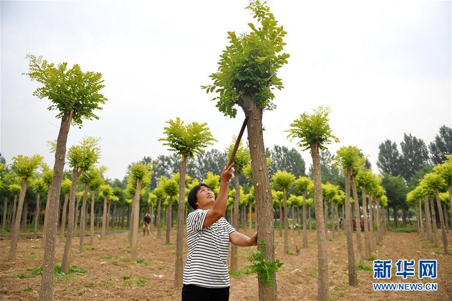 •      7月10日,河北省巨鹿縣種植戶在苗木基地內勞作。近年來,河北省巨鹿縣把景觀苗木繁育種植作為精準扶貧的重要抓手,采取“公司+合作社+農戶”的經營模式,集中連片發展。目前,巨鹿縣已有苗木專業合作社20余個,帶動5000多農戶實現增收。新華社記者 牟宇 攝