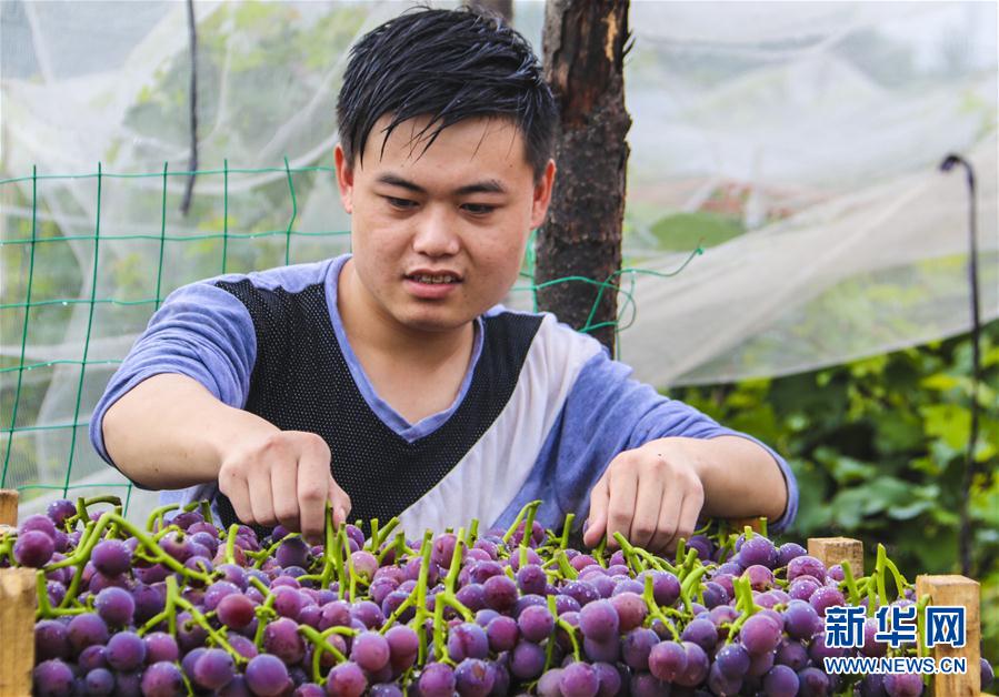 8月14日,在河北永清縣三圣口鄉冰窖村,農民在打理剛剛采摘的葡萄準備出售。新華社記者李曉果 攝 -