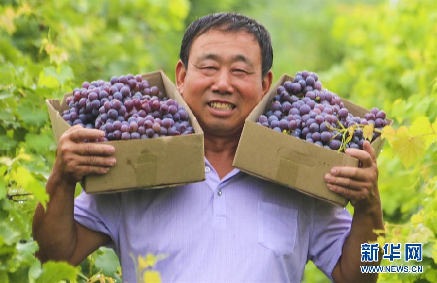 8月14日,在河北永清縣三圣口鄉冰窖村,農民在為游客搬運剛采摘的葡萄。新華社記者李曉果 攝 -