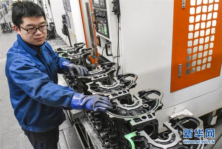12月15日,在河北省深州市的一家公司,工人在加工生產(chǎn)發(fā)動(dòng)機(jī)缸體。機(jī)械制造業(yè)是河北省深州市的傳統(tǒng)產(chǎn)業(yè)。