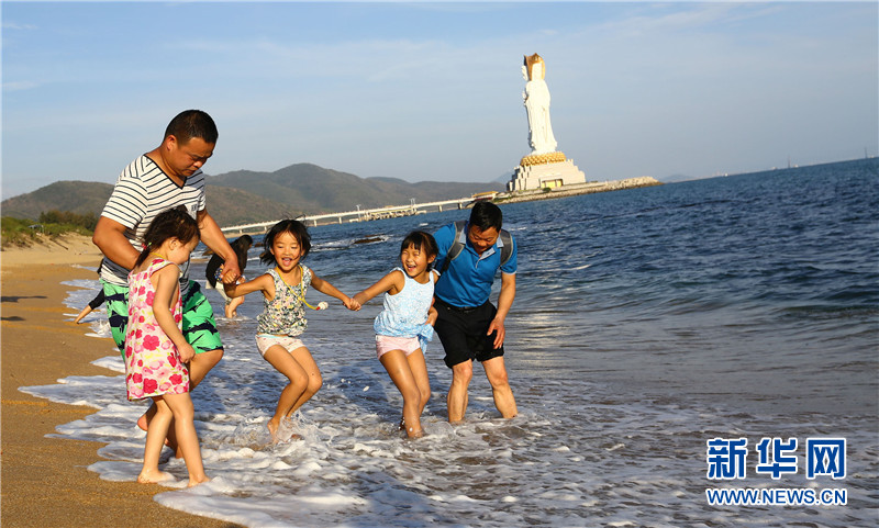 1月29日大年初二,家長帶孩子在南山景區(qū)海邊游玩。春節(jié)期間,三亞旅游火熱,各景區(qū)迎來客流高峰。以三亞南山景區(qū)為例,7天共接待中外游客31萬余人次,超過去年同期,再創(chuàng)歷史新高。其中,散客有八成多。新華網(wǎng)發(fā)(陳文武 攝)