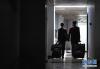 2月1日,寧儒(左二)、梁鶴(左三)在登機前進行儀容儀表檢查。新華社發(楚洪雨 攝) -