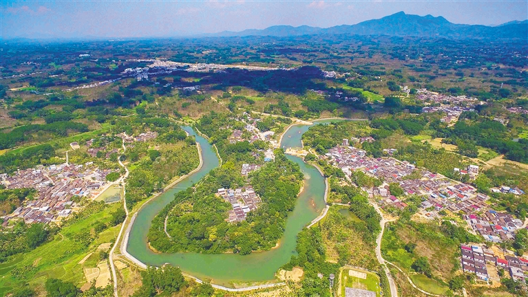 近日,在屯昌縣烏坡鎮青梯村附近的青梯河,治理后的河流干凈清澈,河堤整潔美觀。