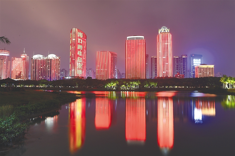 炫麗的燈光秀預熱“海口跨年狂歡季”。通訊員 石中華 攝