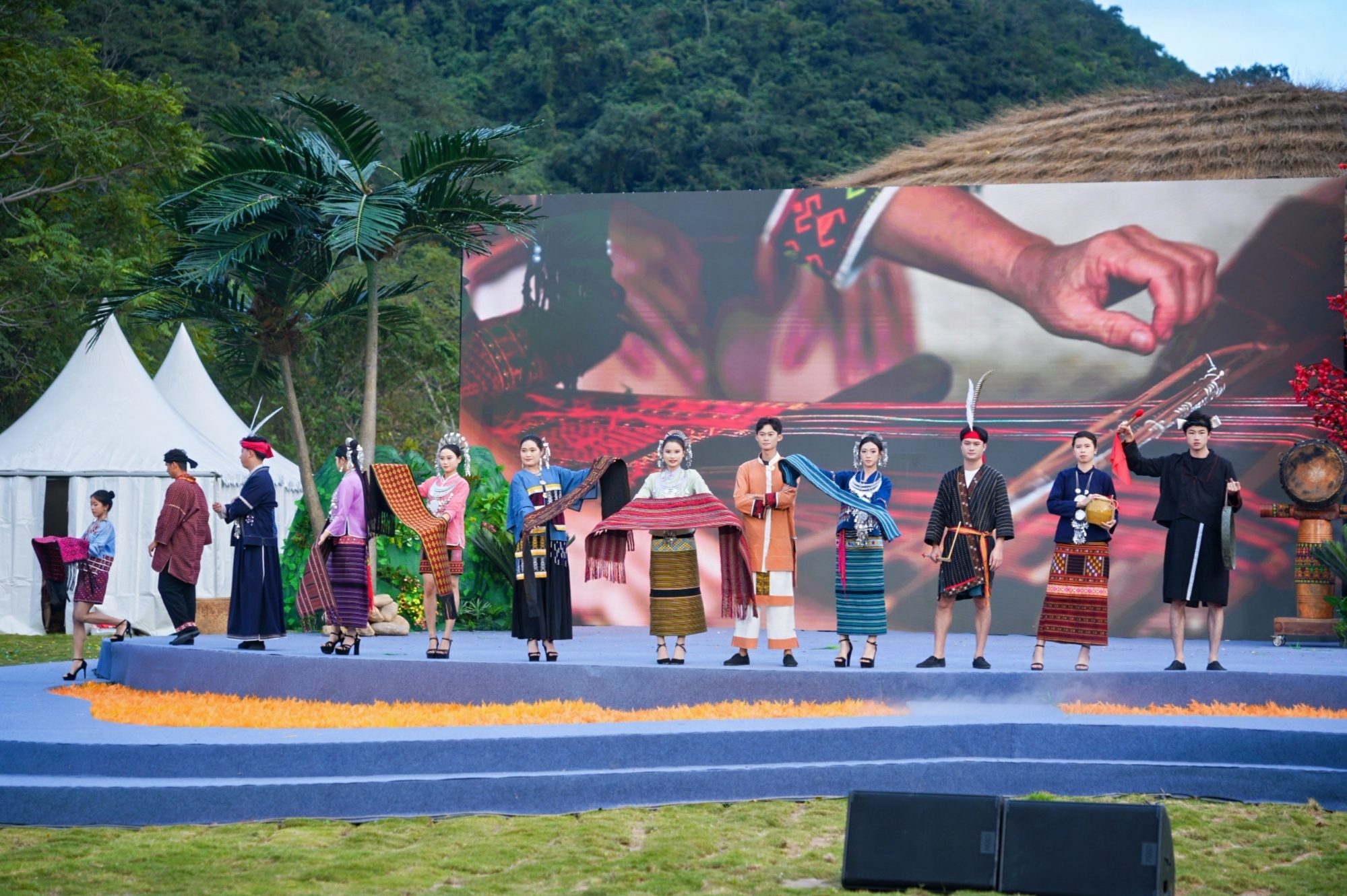 當天,開幕式以一場融入自然場域的實景演出為核心亮點,通過多個節目呈現熱帶雨林生物多樣性、黎族生產生活場景以及海南長臂猿的保護成效。活動還設置黎錦編織等互動環節,讓各民族群眾在編織體驗中深化情感共鳴。演出全程遵循“最小干預”原則,采用環保材料與可逆式舞臺設計,體現尊重自然的理念。