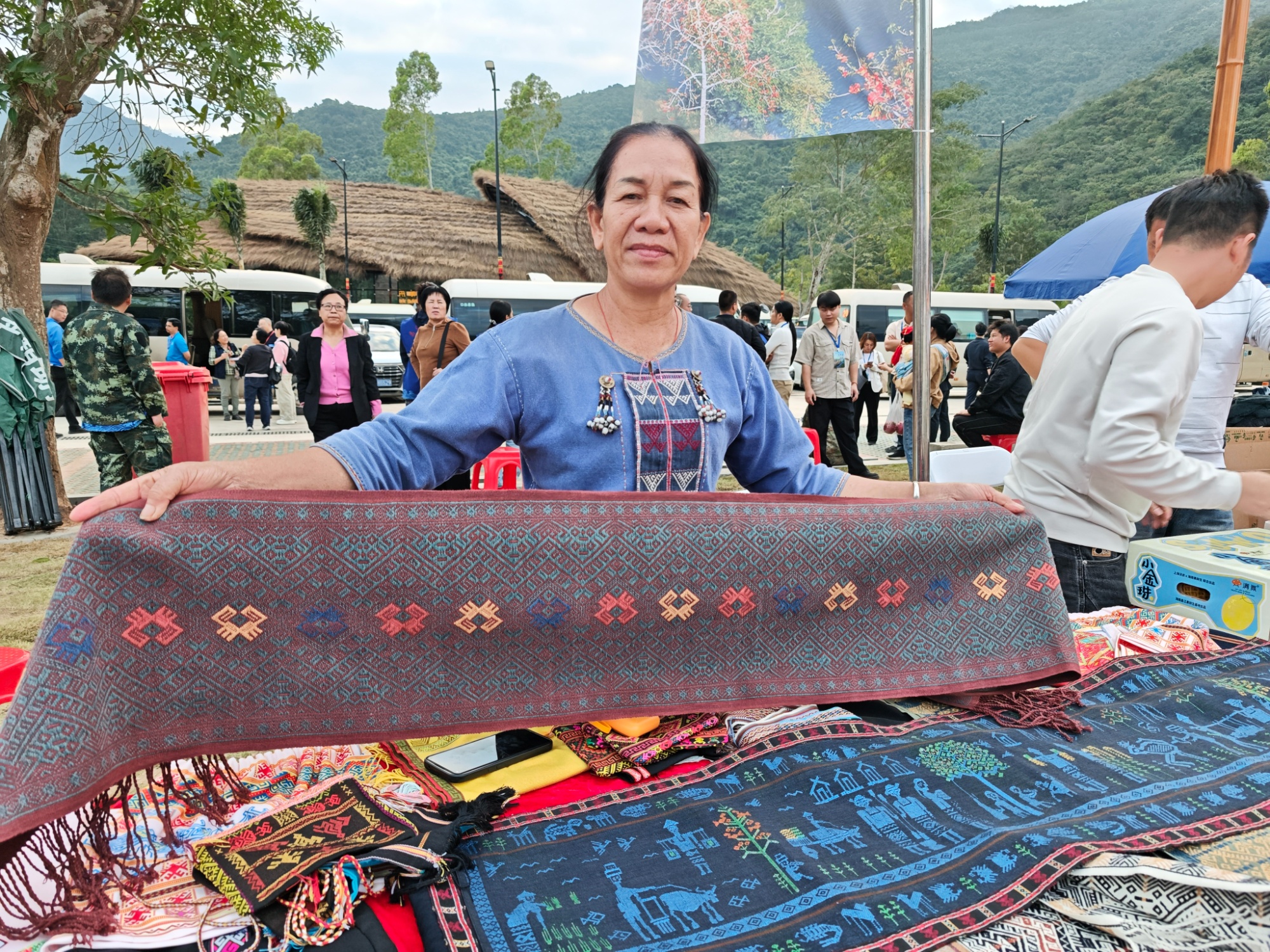 黎族阿姨展示手織黎錦(央廣網記者 蔡文娟 攝)