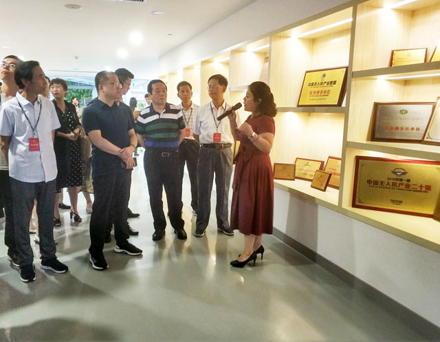 隨后,代表參觀了天鷹兄弟無人機展廳、企業文化墻等,并觀看了天鷹兄弟植保無人機作業視頻。現場負責人張思玲為大家詳細介紹了天鷹兄弟自成立以來發展歷程以及獲得的多項榮譽,代表們對天鷹兄弟企業創新創業發展成果以及在農業植保無人機領域做出的突出成績給予高度的評價。