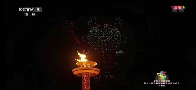 開幕式上,各代表團身著特色服飾逐一出場,載歌載舞,熱鬧歡騰。更有千架無人機表演驚喜亮相,絢爛夜空。據悉,本次無人機編隊由高巨創新與零度智控聯手打造。無人機編隊以運動會吉祥物“中中”的造型率先亮相,只見中中身穿一襲中國紅,手持火把,伴隨著《我和我的祖國》悠揚的歌聲,與大家親切會面。