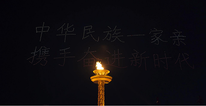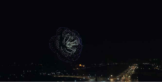 除此之外,當晚的無人機編隊還展示了月季花、牡丹花等造型,以及象征民族團結的紅石榴。
