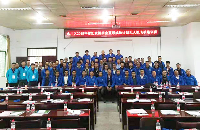 10月14日,永川區(qū)2019年智匯農(nóng)機手金藍領(lǐng)成長計劃無人機飛手培訓(xùn)正式開班。本次培訓(xùn)由區(qū)農(nóng)業(yè)農(nóng)村委主辦,區(qū)供銷社協(xié)辦,農(nóng)機推廣站及重慶天鷹兄弟無人機有限公司承辦。60名新型農(nóng)民參加了飛手培訓(xùn)。