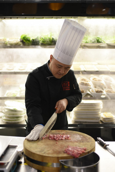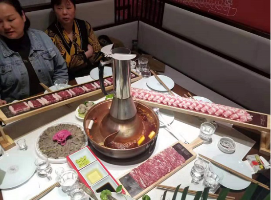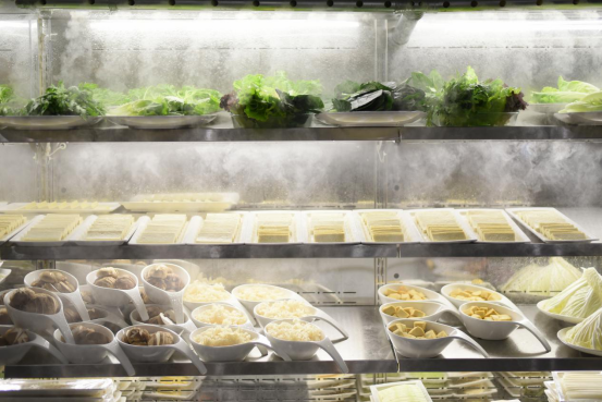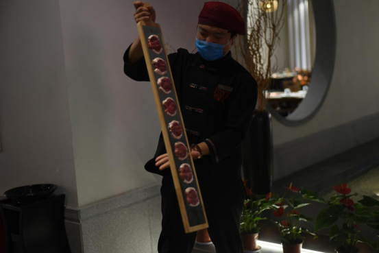 3、新鮮現切,所有鮮肉保證冷鏈運輸,最大極限保證肉質的新鮮。明檔現切,新鮮看得見。置于盤上,任性翻轉不脫落。