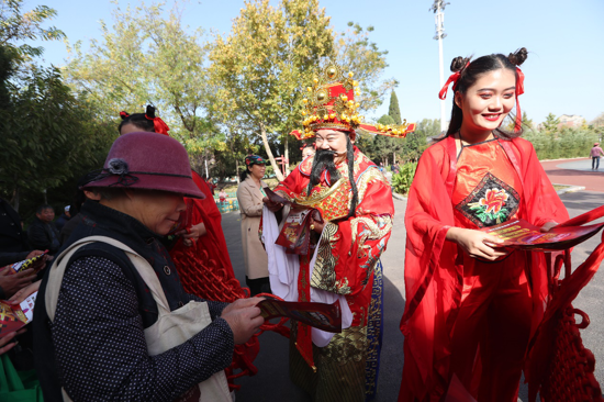 “咱老家了貨啥都有可排場!上網你知道去哪最得勁不?” 昨天(11.10)下午,不少開封市民在汴京公園門前的廣場上,圍觀了一場特殊的河南傳統曲藝閃秀。