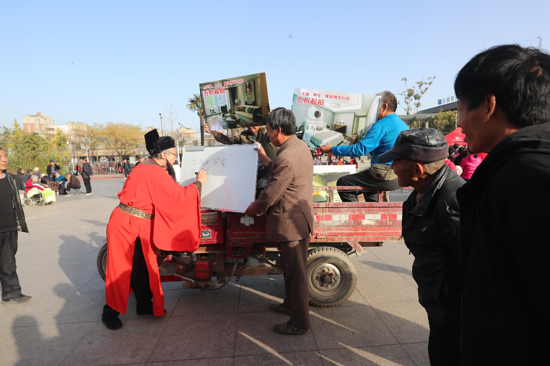 同樣屬于非物質文化遺產的還有河南開封清明上河園包公稱秤的扮演者王惠老師。王師傅因為一次偶然的機會在淘寶上買到了一副便宜又好用的老花鏡,由此愛上了網購。天貓雙11預熱開始,他在網上看到不少適合父老鄉親的河南寶物,尤其是阿里拍賣上上線了一大批失眠價格五折起拍的學區房。為了幫助還不太會網購的開封市民,學會上網技巧,從11月1號開始,包師傅就帶著清明上河園的豫劇表演團隊,在汴京公園門前的廣場上免費為父老鄉親們表演。并將河南傳統文化中,適合走街創想的喜劇表演,包括:肚皮戲法、散財童子送福等進行重新編排,用河南方言俚語巧妙編輯天貓雙11的優惠和使用攻略。