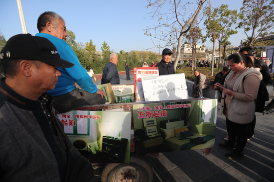 熱鬧的包公小課堂現場立刻吸引了不少圍觀群眾,“錯過白說我某給你說啊”為了讓大家更簡單獲得操作技巧,王師傅拿出移動白板邊說邊寫:“第一步:打開淘寶;第二步:搜索學區房;第三步:選城市,鄭州,注意,上面的價格是起拍價~看好了,回家和兒子、閨女商量一下,注意時間讓孩子給你搶!币贿吔虒W,王師傅一邊囑咐老年市民,理性消費。在掌握上網技巧后,不少市民拿著手機認真研究起了網購。