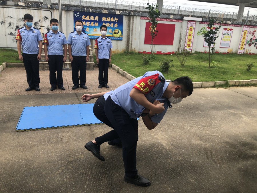 訓練中,小教官對五個徒手防衛(wèi)與控制動作中的推面鎖臂、折腕翻頜動作進行了細致的講解和示范演練,對發(fā)