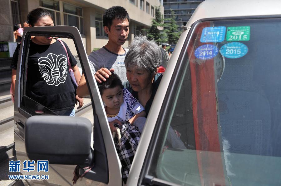 8月25日,在太原市山西省兒童醫院,小可然在父親、奶奶的陪伴下坐上回家的汽車。