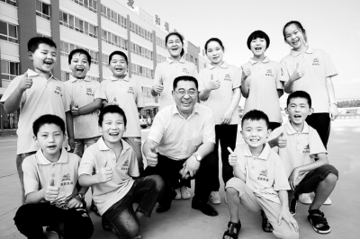 7月11日,校長汪艦和孩子們在一起。記者王錚攝