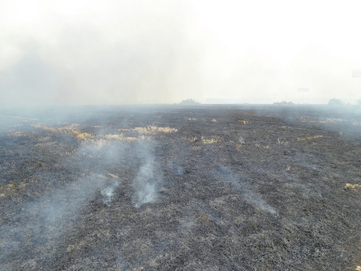 據本報記者目測:淮河北岸、淮河大橋東側的麥茬地,過火面積近百畝。其上空因滾滾濃煙彌漫,天空暗了;因煙嗆無法落在枝頭的鳥兒,凄慘地叫著。