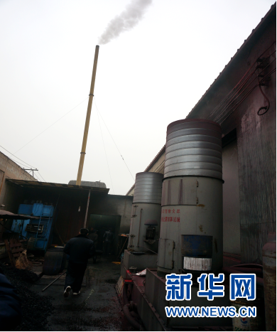 20日,一家工廠內的煙囪正冒著黑煙,督查組人員進行突擊檢查。新華網記者袁晗攝