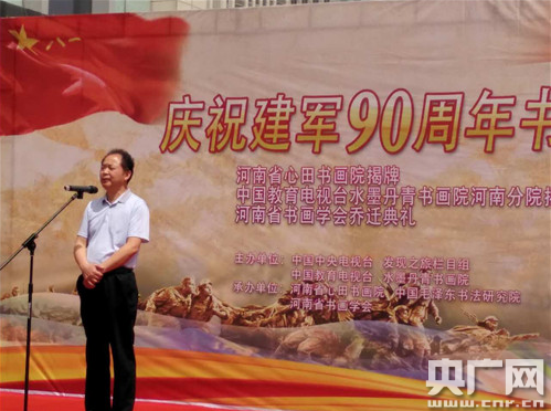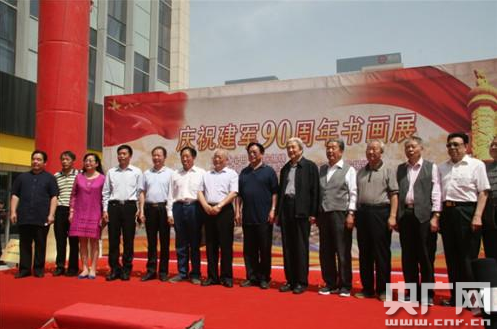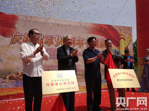 央廣網河南分網5月7日消息 揮毫潑墨傳承中華民族文化,捻筆勾描展現改革強軍風采。5月7日上午,為迎接中國人民解放軍建軍90周年,大力弘揚我黨我軍光榮傳統,熱情謳歌人民軍隊忠誠于黨、矢志不渝的革命信念,藝術再現人民軍隊波瀾壯闊的光輝歷史。河南省心田書畫院在省會鄭州隆重舉行揭牌儀式。開幕式上,來自全國各地的數百名書畫名家前來觀賞祝賀,十六屆中共中央委員、全國政協常委、原解放軍裝備部副政委李棟恒中將為開幕式剪彩。