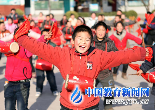 央廣網河南分網消息 據(jù)中國教育報報道:近日,放寒假的孩子們正在學習打腰鼓。河南省靈寶市尹莊鎮(zhèn)岳度小學組織留守兒童成立腰鼓隊,邀請民間藝人手把手地教孩子們學習打腰鼓,讓留守兒童在歡樂中度過假期。(趙華 攝)