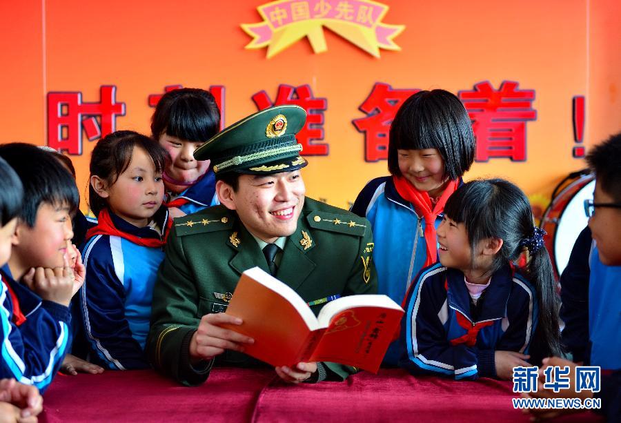 央廣網河南分網消息 據新華網報道:3月4日,唐山市公安邊防支隊民警在轄區黑沿子村小學為小學生們講雷鋒的故事。當日,河北唐山市公安邊防支隊76名校外輔導員走進轄區各小學,組織小學生們開展“雷鋒在我心中”主題班會活動,通過講述雷鋒故事,引導小學生從自我做起、從身邊事做起,培育和踐行社會主義核心價值觀,弘揚當代雷鋒精神。新華社發(盧海鵬 攝)