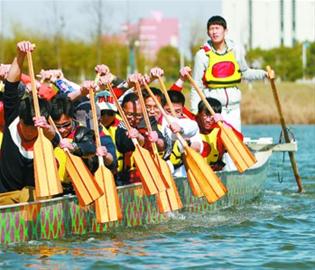 中國中學的龍舟隊有17位高一、高二學生,這僅僅是全市48支中學龍舟隊中的一支。摩拳擦掌,為的就是今年6月1日、2日兩天在東方綠舟舉行的首屆上海市學生龍文化全能賽。據悉,這場由市教委、市體育局、團市委等部門牽頭主辦的活動,包括天龍 (風箏)、地龍(舞龍)、水龍(龍舟)“三龍比賽”,從小學到大學分為幾個組別。