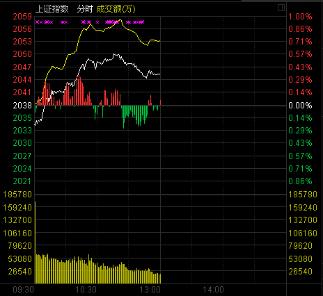央廣網河南分網消息 據(jù)新華網報答:今日兩市低開,題材股仍然是市場炒作的主要對象,滬深指數(shù)早盤震蕩上揚,直至午盤兩市全線翻紅,創(chuàng)業(yè)板沖高回落。截至午盤,滬指報2045.40點,上漲7.06點,漲幅0.35%,成交484.5億元;深成指報7198.55點,上漲38.92點,漲幅0.54%,成交690.9億元;創(chuàng)業(yè)板指報1359.65點,下跌4.23點,跌幅0.31%,成交157.3億元。