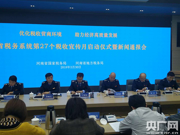 3月30日,河南省稅務系統第27個稅收宣傳月啟動儀式暨新聞通報會現場
