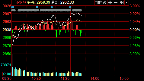 央廣網河南分網消息 據新華網報道:8日,午后兩市繼續上攻,滬指突破3000點大關。截至發稿,滬指報3000.08點,上漲62.43點,漲幅2.13%;深成指報10387.62點,上漲320.34點,漲幅3.18%;創業板指數報1588.19點,上漲6.28點,漲幅0.4%。
