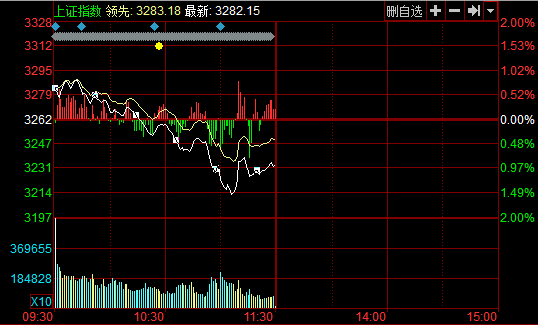 央廣網(wǎng)河南分網(wǎng)消息 30日,兩市雙雙高開,隨后指數(shù)震蕩下挫。盤中受保險等權(quán)重股影響,滬指跌逾1%,創(chuàng)業(yè)板跌破1700點。截至午盤,滬指報3230.66點,下跌31.64點,跌幅0.97%,成交1697億元;深成指報11210.32點,下跌38.72點,跌幅0.34%,成交1318億元;創(chuàng)業(yè)板指數(shù)報1692.7點,下跌18.67點,跌幅1.09%,成交227.3億元。