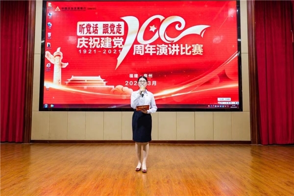 為慶祝百年華誕,進一步推進黨史學習教育,農發(fā)行泉州市分行舉辦“聽黨話 跟黨走”慶祝建黨100周年演講比賽。