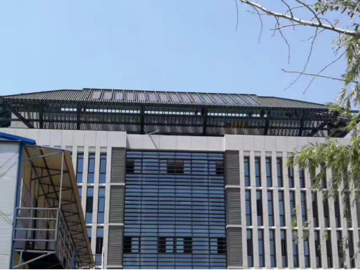 在振華樓建造過程中,建設團隊了解到漢能薄膜太陽能發電,毫不猶豫的在既定的設計方案中加入了漢能薄膜發電的產品方案,在振華樓的屋頂采用斜鋪的方式,完美的融合在大樓的屋頂。