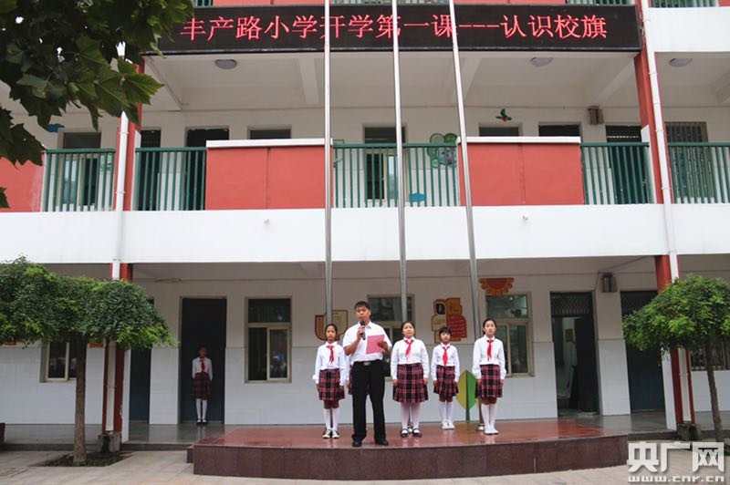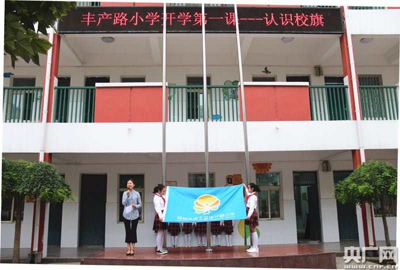 央廣網河南分網消息 金秋送爽,丹桂飄香,8月28日早上8點,鄭州市金水區豐產路小學全體師生在學校操場舉行了隆重的開學典禮。