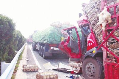 記者趕到連霍高速公路395公里寧陵縣段南半幅的事故現場看到,附近一公里的范圍內,多輛車追尾。其中,有滿載蘋果的車輛、滿載鴨子的車輛,滿載機器零件的車輛,還有一些轎車。