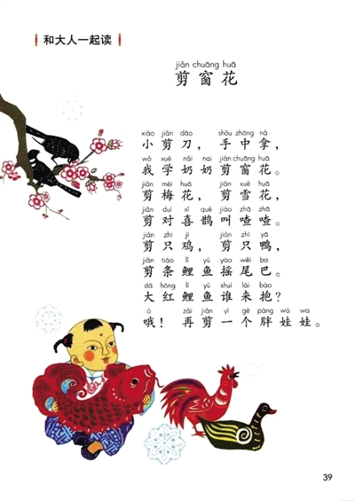 值得一提的是,“部編本”新教材增加了“和大人一起讀”欄目。總主編溫儒敏教授曾說,“和大人一起讀”是新教材的亮點之一。大人指父母、老師或其他家庭成員與親友。一年級剛上學(xué)的學(xué)生自己還不會讀,所以讓大人和他們一起讀。