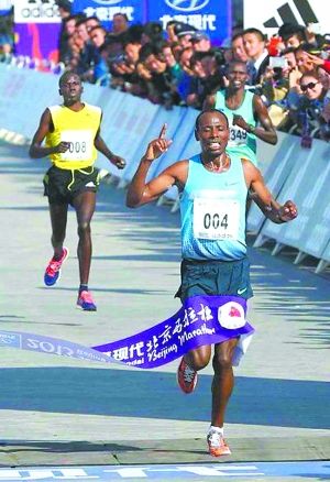 本次比賽特邀了11位外國男子職業高手和5位外國女子職業選手。在比賽幾乎是一出發就形成了以非洲選手為組的領先集團,3公里左右,還剩15人左右的第一集團,就是清一色的非洲選手。在23公里左右,5名選手從第一集團里脫穎而出,形成有力的沖冠集團。
