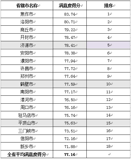 河南省18個(gè)省轄市旅游公共服務(wù)滿意度得分排序