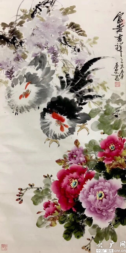 平樂村村民、牡丹書畫院院長郭泰森:“洛陽市第一屆牡丹文化節時,他和哥哥郭泰安到王城公園看牡丹,回來以后,郭泰安開始畫牡丹,并把牡丹畫拿出去銷售,結果還真賣出去了,當時比較稀罕。”