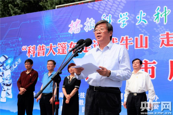 科普大篷車走進(jìn)伏牛山走進(jìn)貧困縣”科技志愿服務(wù)活動(dòng)啟動(dòng)現(xiàn)場(chǎng)(央廣網(wǎng)發(fā) 通訊員 王紅松供圖)