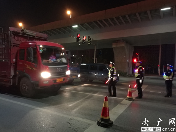 央廣網河南分網11月15日消息 (本網特別報道組)11月14日晚上十一點左右,鄭州、洛陽、開封、安陽、鶴壁、新鄉、焦作、濮陽、三門峽、商丘市等交警支隊異地用警開展嚴查城市工程運輸(渣土)車交通違法行為集中統一行動。