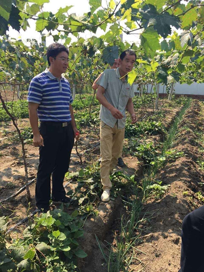 圖片說明:陳召起到劉飛種植合作社的葡萄園調研并幫劉飛出主意