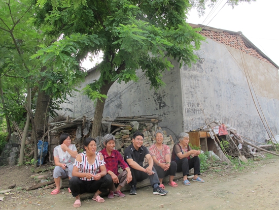 7月11日臨近中午時分,河南上蔡縣五龍鎮高白玉村葉莊自然村街道旁的一棵大合歡樹下,兩位村干部模樣的人正在與幾位村民高興地坐著聊天……