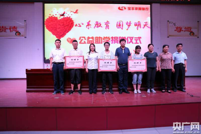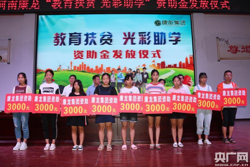 央廣網(wǎng)河南分網(wǎng)8月22日消息 “感謝教育扶貧政策,讓我享受了免費營養(yǎng)午餐、學(xué)費減免、學(xué)費資助,可以心無旁騖的學(xué)習(xí),感謝愛心企業(yè)的助學(xué)金,可以讓我不再為大學(xué)學(xué)費而發(fā)愁。”8月21日,河南寶豐一高學(xué)生謝帥博在河南康龍集團“教育扶貧 光彩助學(xué)”資助金發(fā)放儀式上發(fā)自肺腑的感言。