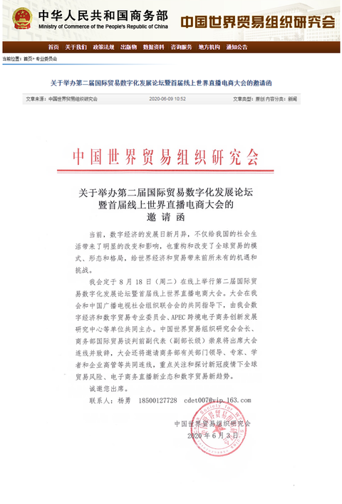 中國世界貿(mào)易組織研究會會長、商務(wù)部國際貿(mào)易談判前副代表(副部長級)崇泉將出席大會并連線致辭,大會還將邀請商務(wù)部和其他有關(guān)部門負(fù)責(zé)人,行業(yè)專家、學(xué)者和企業(yè)高管等共同連線,重點關(guān)注和探討疫情下全球貿(mào)易風(fēng)險、電子商務(wù)直播新業(yè)態(tài)和數(shù)字貿(mào)易發(fā)展新趨勢。