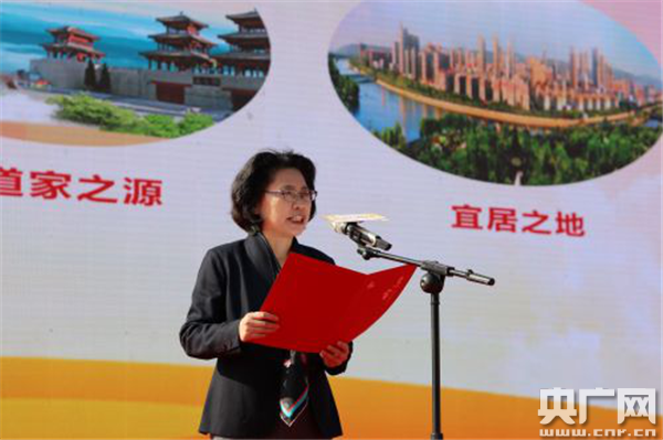 豫晉陜黃河金三角蘋果展銷會暨靈寶市第十四屆金城果會在《鼓韻金城》文藝節(jié)目中開始。河南省靈寶市委書記孫淑芳就靈寶通過蘋果產(chǎn)業(yè)帶動三產(chǎn)融合、脫貧攻堅(jiān)和高質(zhì)量發(fā)展進(jìn)行了推介。