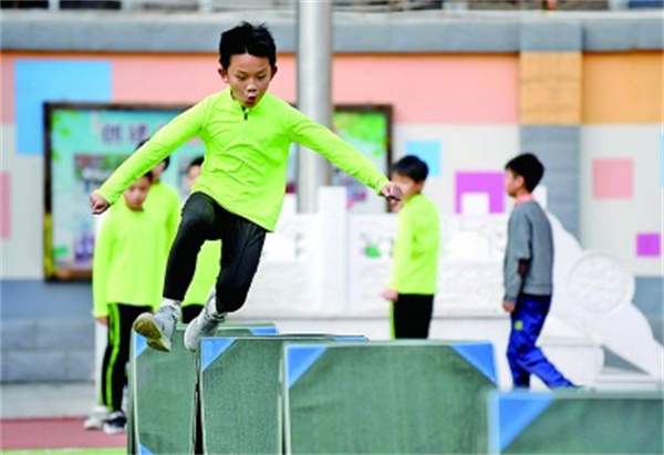 河北石家莊市橋西區(qū)裕華西路小學(xué)內(nèi),參加課后托管的學(xué)生在進(jìn)行體育訓(xùn)練。新華社發(fā)