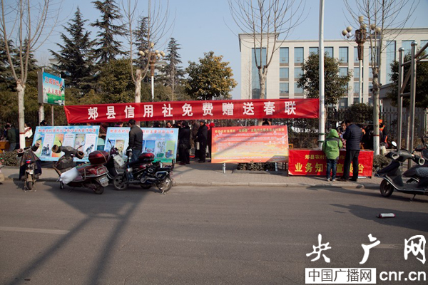 聯社正式組建志愿者服務隊,按照便于組織及特長的原則,由聯社統一分配地域崗位,合理劃分志愿者服務隊小分隊,在縣城繁華路段設郟縣農信社業務知識流動宣傳臺,現場答疑解問,講解金融業務知識,并聘請4名書法名家現場免費為群眾寫春聯。
