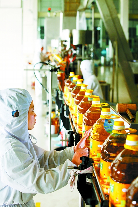 中廣網(wǎng)河南分網(wǎng)消息 據(jù)河南日?qǐng)?bào)報(bào)道:2月13日,在開封縣黃龍產(chǎn)業(yè)集聚區(qū)龍大花生食品產(chǎn)業(yè)園內(nèi),工作人員對(duì)花生油制品進(jìn)行檢測(cè)。近年來(lái),該縣已逐步形成集花生種植、花生油壓榨等為一體的產(chǎn)業(yè)鏈,提升了農(nóng)業(yè)產(chǎn)業(yè)化水平。記者 史長(zhǎng)來(lái) 攝