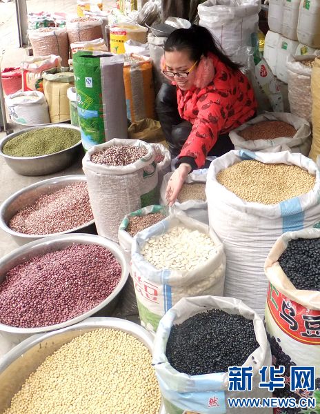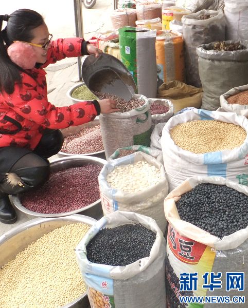 1月7日,市民在河南省平頂山市寶豐縣農(nóng)貿(mào)市場選購熬制臘八粥的五谷雜糧。